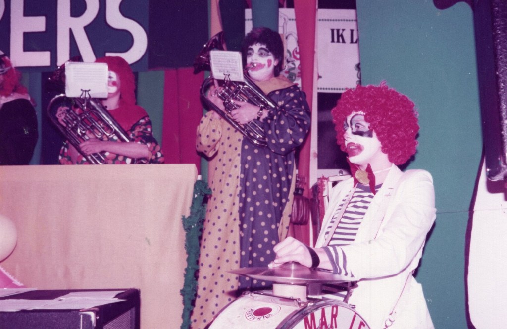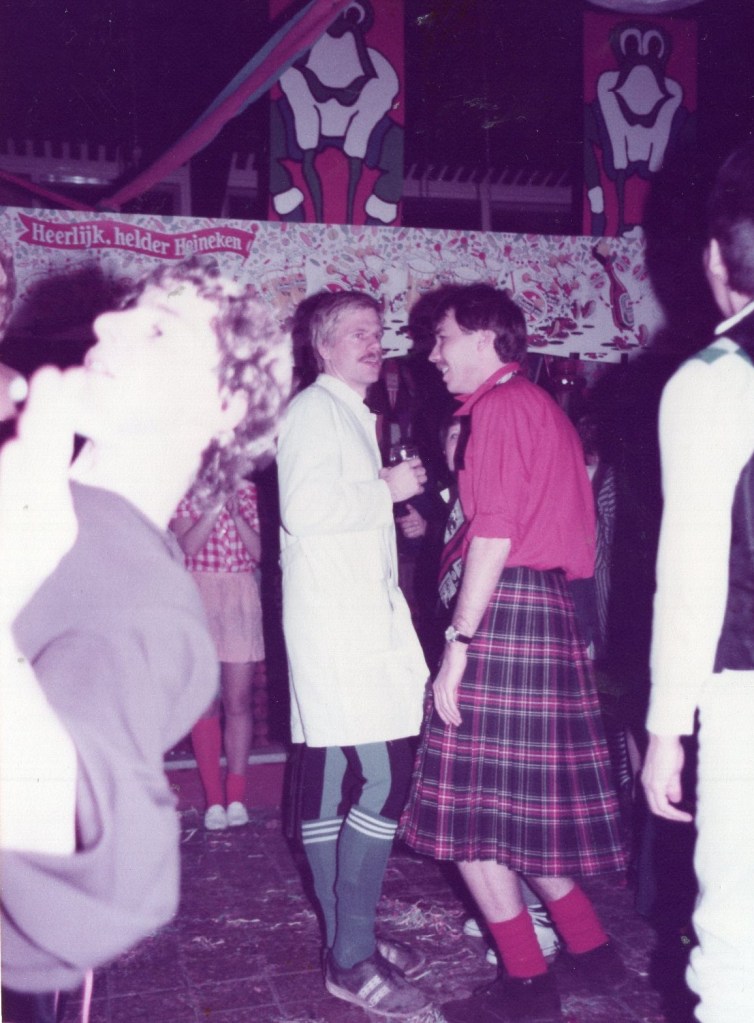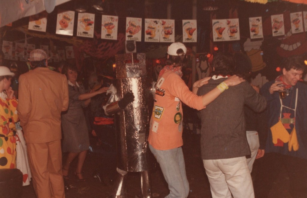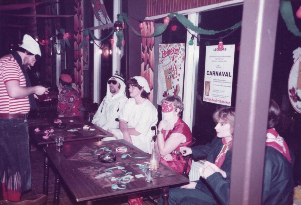Om nu te zeggen dat die datum in mijn geheugen staat gegrift is overdreven, maar vanaf het moment dat ik met twee droge klikken mijn gedateerde Samsonite koffer openmaak, dwarrelen allerlei herinneringen in de vorm van notulen, draaiboeken, begrotingen, posters, toegangskaarten en natuurlijk foto’s als tastbare herinneringen om mij heen. Met name foto’s, heel veel foto’s. Het is net alsof een zorgvuldig weggestopte en vergeten wereld weer in al zijn kleurigheid tot leven komt. Ik gun mezelf geen tijd om te gaan zitten. Mijn handen bladeren gretig door de stapels met “belangrijke” informatie van toen. Gezichten en namen worden al lezend weer aan elkaar gekoppeld. Sommige namen vergeet je nooit: die staan in mijn geheugen en in dat van veel Leonidassers met mij gegrift. “Ome” Jan ter Heerdt, altijd aanwezig als je hem nodig had. Als dankjewel mocht Jan gratis naar binnen en werd ie gepamperd met borreltjes en sigaren. Ton Mandos met zijn gereedschapskissie en André Suijker in zijn kielzog, altijd in de weer als de kantine moest worden omgebouwd tot een heuse residentie.