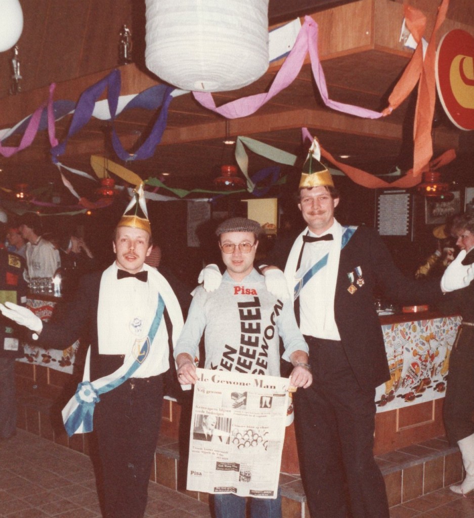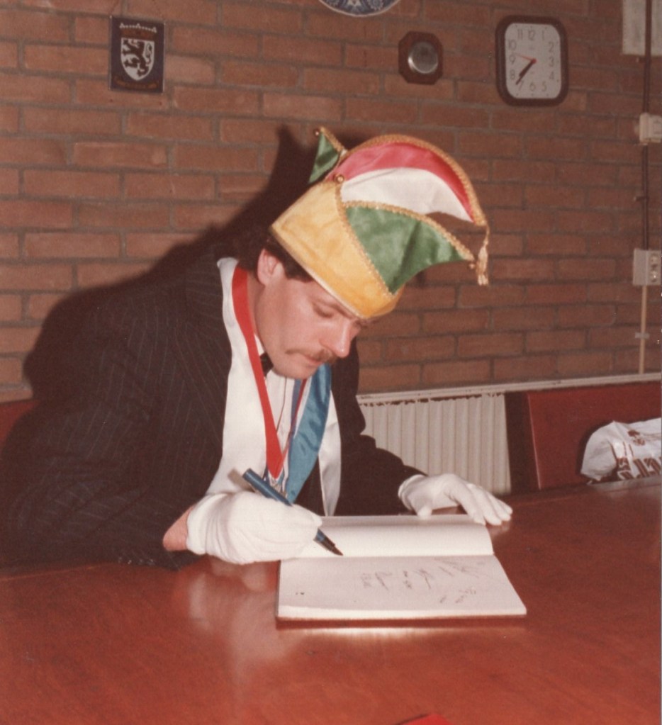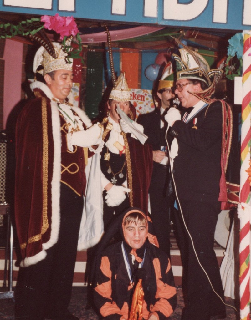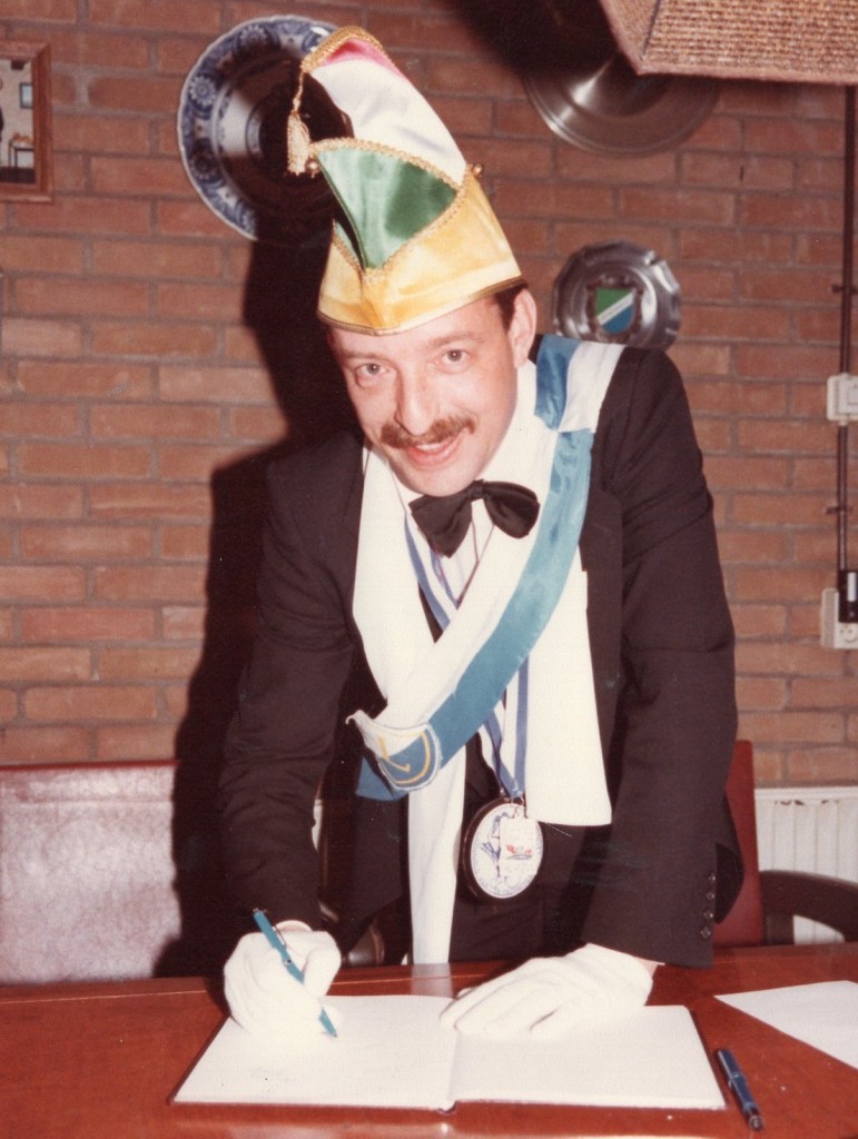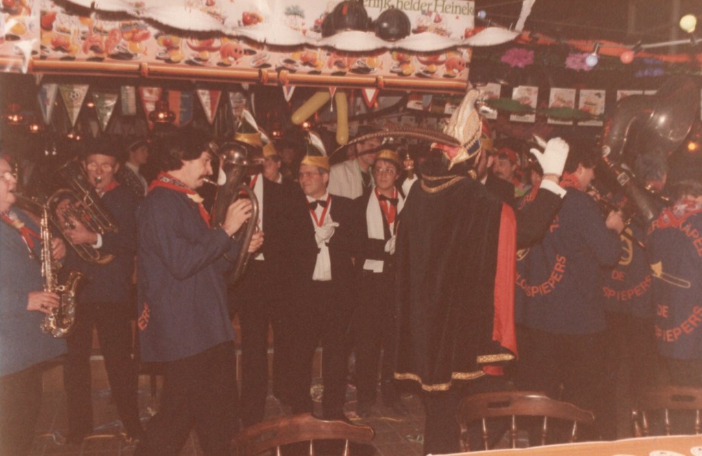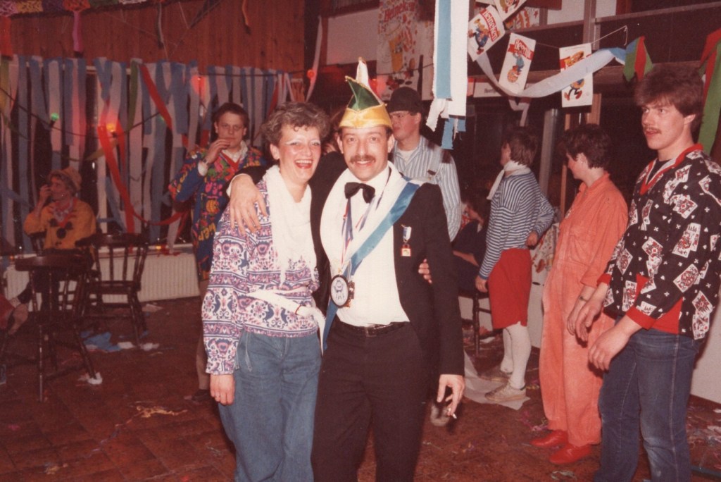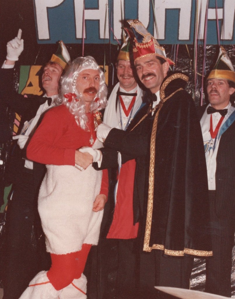 Deel uitmaken van de Raad van Elf was uiteraard een zeer serieuze zaak. Er werd nadrukkelijk gewezen op de voorbeeldfunctie. Dus geen enkel raadslid mocht al om 10 uur ’s avonds laveloos aan de bar hangen. Nee: ze moesten voorgaan in het feestgewoel, mensen enthousiast maken en dat alles in vol ornaat: zwart pak, dito strik, witte sjaal en handschoenen en een strak gesteven steek. En dit alles diende na het feest keurig te worden ingeleverd op straffe van …. ja waarvan eigenlijk? We zullen het nooit meer te weten komen. Onvergetelijk uit die periode zijn ook de capriolen van Henny Hamers alias Nar Nidas die met zijn geheel eigen invulling de vele prinsenballen en carnavalsavonden opluisterde. Het vinden van een passend narrenpak was voor hem minder problematisch dan het aanschaffen van voornoemd zwart maatkostuum.