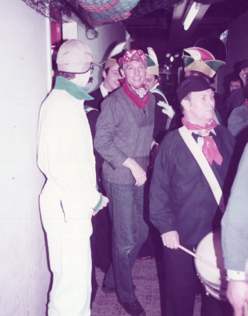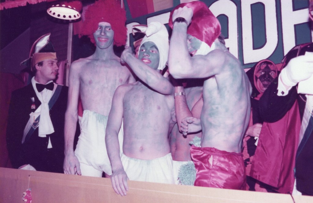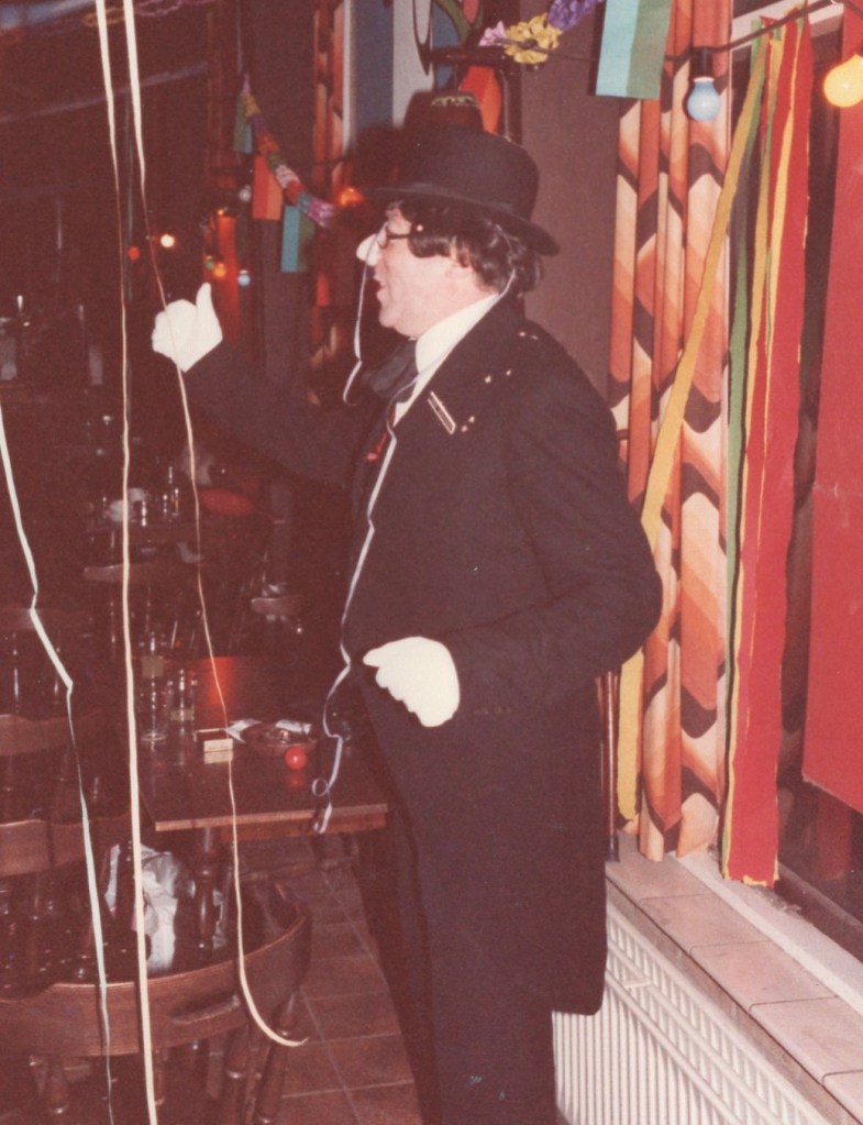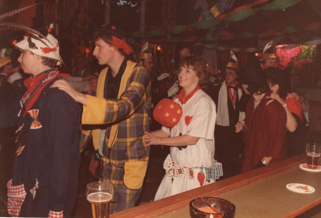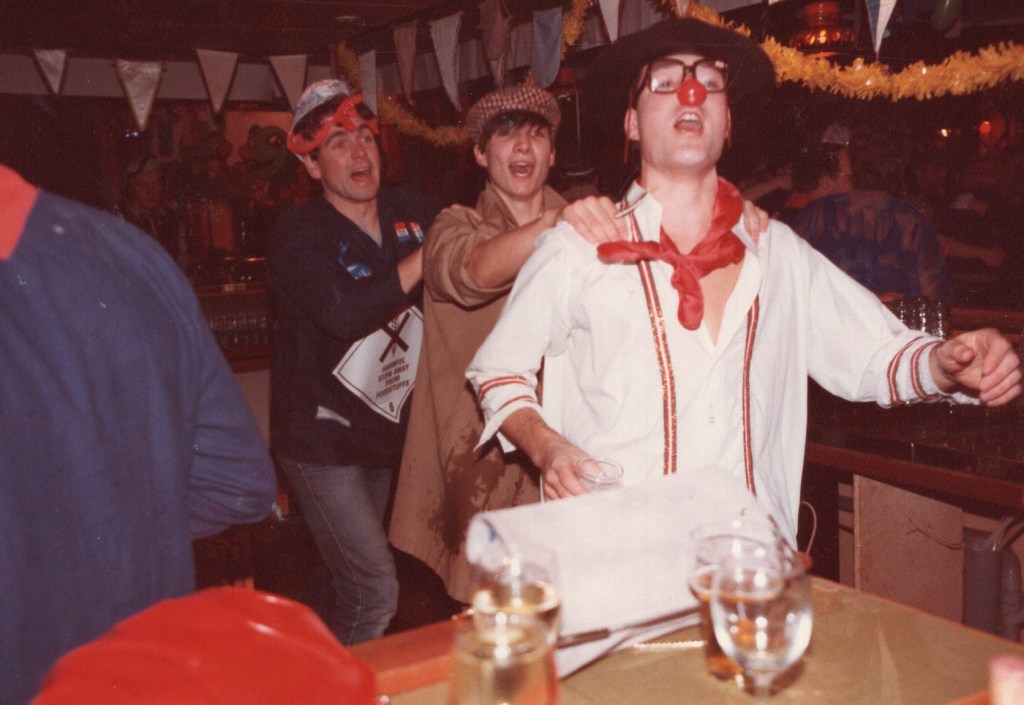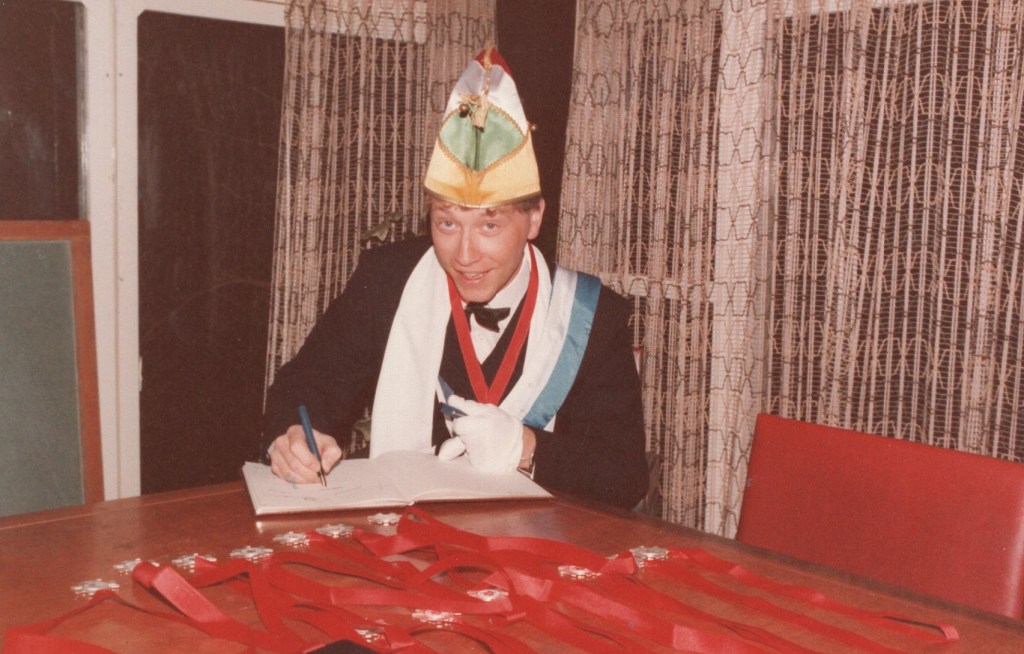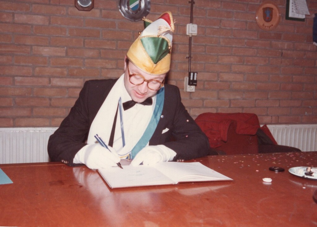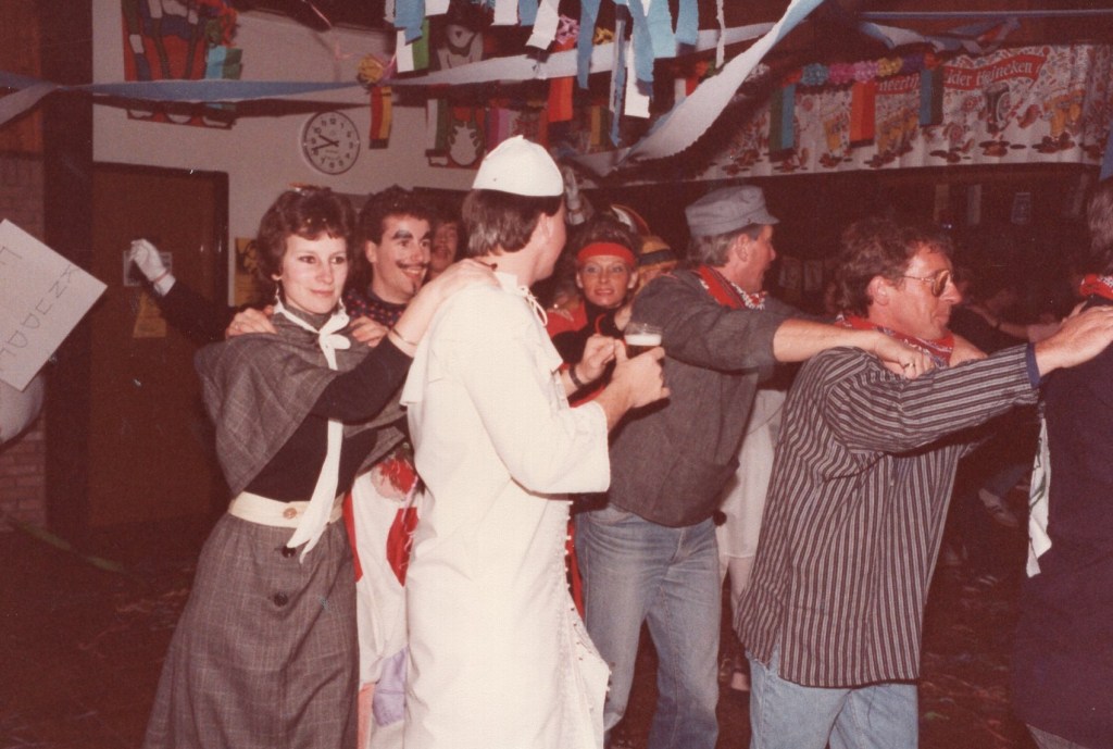 Deel uitmaken van de Raad van Elf was uiteraard een zeer serieuze zaak. Er werd nadrukkelijk gewezen op de voorbeeldfunctie. Dus geen enkel raadslid mocht al om 10 uur ’s avonds laveloos aan de bar hangen. Nee: ze moesten voorgaan in het feestgewoel, mensen enthousiast maken en dat alles in vol ornaat: zwart pak, dito strik, witte sjaal en handschoenen en een strak gesteven steek. En dit alles diende na het feest keurig te worden ingeleverd op straffe van …. ja waarvan eigenlijk? We zullen het nooit meer te weten komen. Onvergetelijk uit die periode zijn ook de capriolen van Henny Hamers alias Nar Nidas die met zijn geheel eigen invulling de vele prinsenballen en carnavalsavonden opluisterde. Het vinden van een passend narrenpak was voor hem minder problematisch dan het aanschaffen van voornoemd zwart maatkostuum.