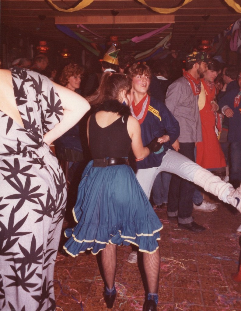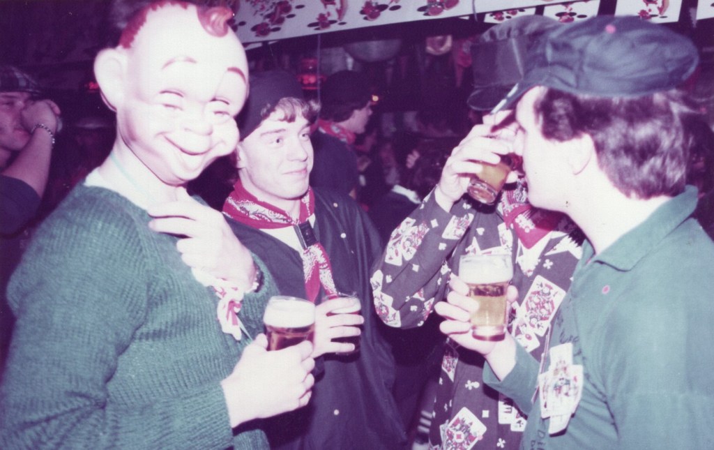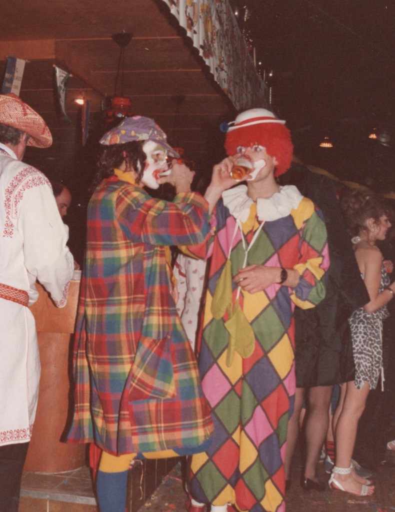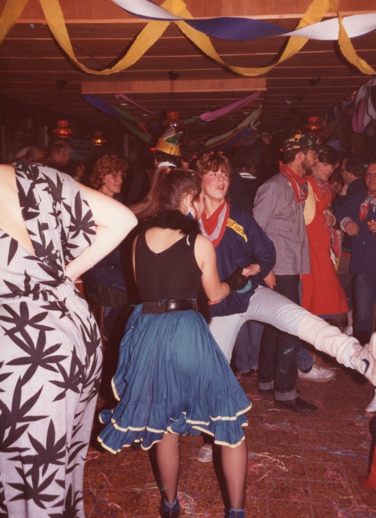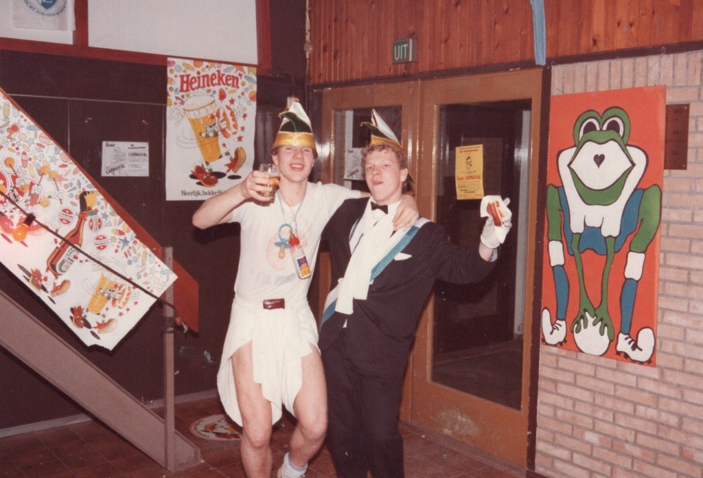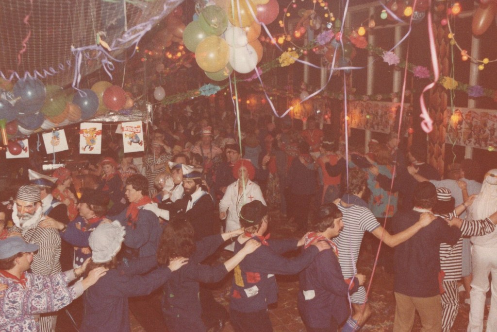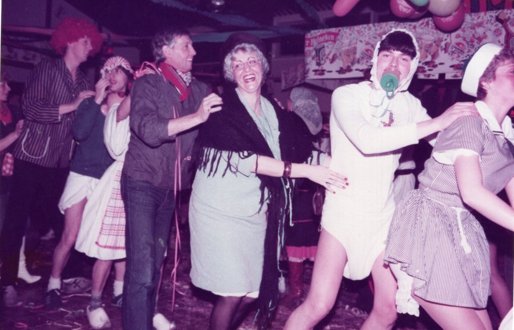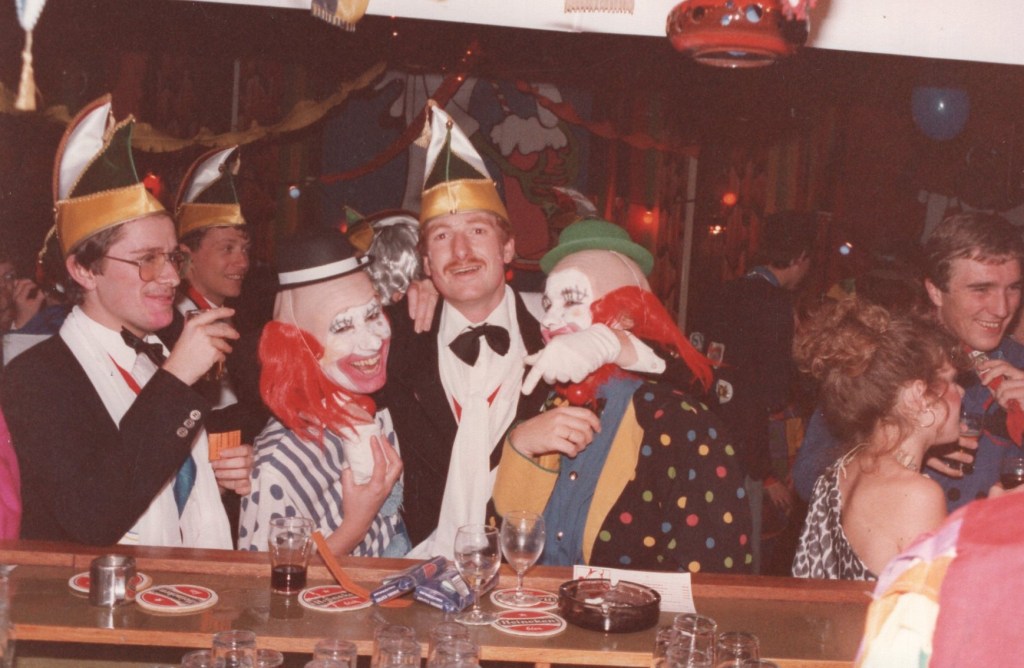 Deel uitmaken van de Raad van Elf was uiteraard een zeer serieuze zaak. Er werd nadrukkelijk gewezen op de voorbeeldfunctie. Dus geen enkel raadslid mocht al om 10 uur ’s avonds laveloos aan de bar hangen. Nee: ze moesten voorgaan in het feestgewoel, mensen enthousiast maken en dat alles in vol ornaat: zwart pak, dito strik, witte sjaal en handschoenen en een strak gesteven steek. En dit alles diende na het feest keurig te worden ingeleverd op straffe van …. ja waarvan eigenlijk? We zullen het nooit meer te weten komen. Onvergetelijk uit die periode zijn ook de capriolen van Henny Hamers alias Nar Nidas die met zijn geheel eigen invulling de vele prinsenballen en carnavalsavonden opluisterde. Het vinden van een passend narrenpak was voor hem minder problematisch dan het aanschaffen van voornoemd zwart maatkostuum.