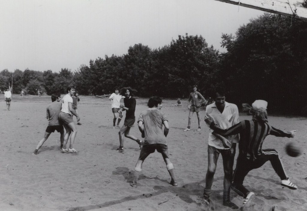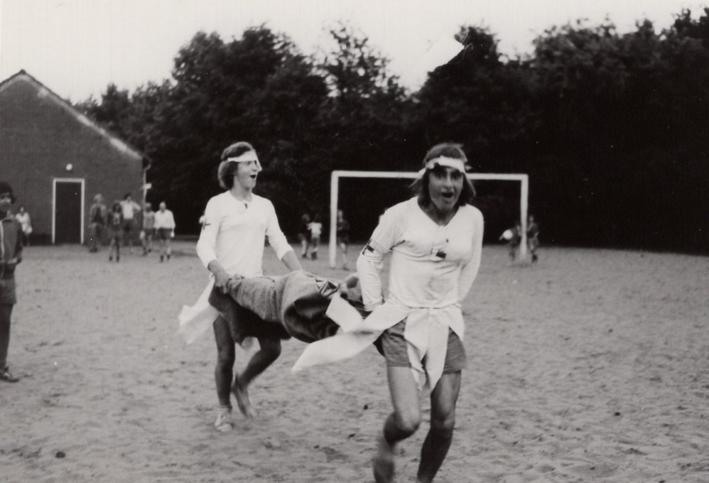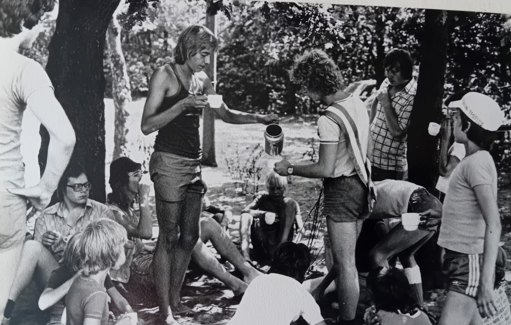 Zomer ’75 is een ontzettend leuke en voor de kleurenkijkers onder u een fijne week geweest in het eikenhout van Oosterhout. De sfeer op dit kamp was weer van ouds. Het gevloek bij het voetballen, het gehengst op tafels tijdens het eten en het maar blijven o.h. als het licht uit was op de slaapzaal. Er is natuurlijk weer een hele goede kampioen uit de bus gekomen, namelijk FC Avondrood. Het spel van deze ploeg overtrof alle andere, vandaar dat we ook geëindigd zijn met een groot puntenverschil. Iedere avond werden we wéér dat bos ingestuurd op zoek naar dobbelstenen of zelfs naar Jan Terheerdt die toevallig ook in Oosterhout was en het nodig vond om je midden in de nacht op een bospaadje één of ander ontzettend leuk spelletje bij te brengen.