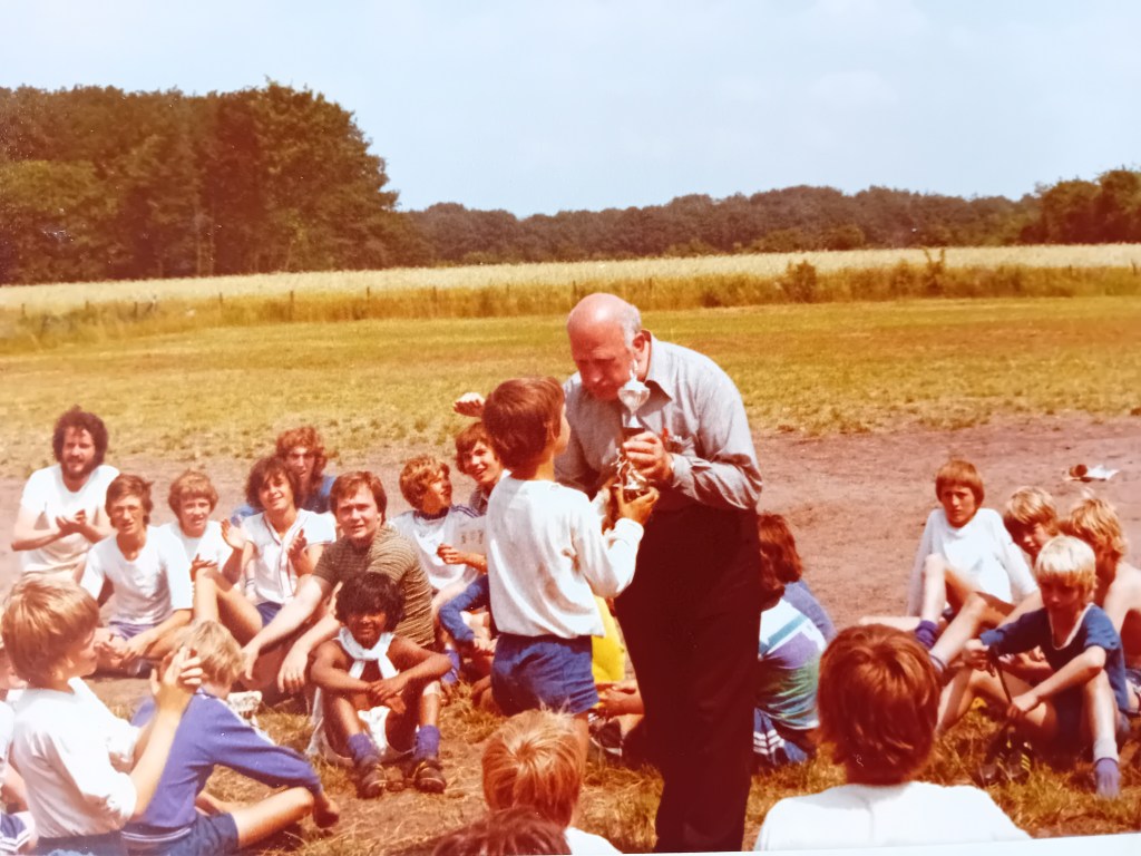 Vrijdag was de laatste dag en de voetbalcompetitie naderde dus zijn einde. Kampioen werd tenslotte Brazilië, Nederland werd tweede, West-Duitsland derde en Italië vierde, natuurlijk door het catenaccio. ’s Avonds een geïmproviseerde dropping. De kleintjes werden het eerst gedropt en waren mooi op tijd weer terug. Bij de groteren liep het uit tot drie uur, maar wat gaf dat, ze konden na zaterdag nog lang genoeg uitslapen. Het was al met al weer een grandioos kamp. Bij deze wil ik iedereen: leiders, kok, keukenpersoneel en de jongens bedanken voor het zoveelste geslaagde zomerkamp Ahoy!