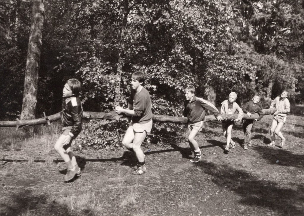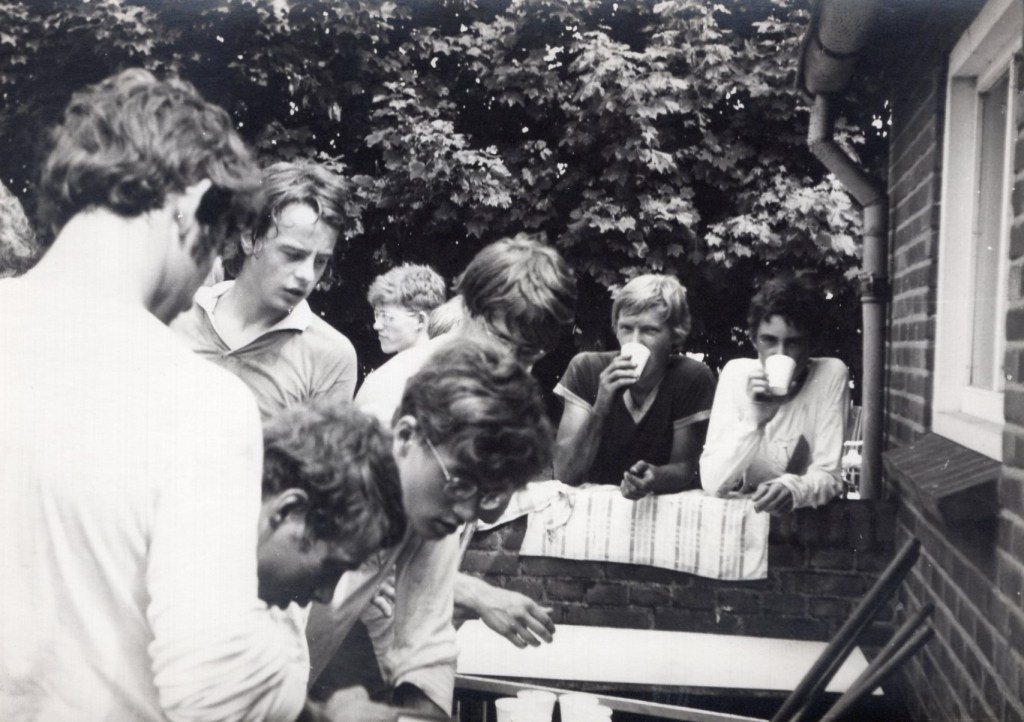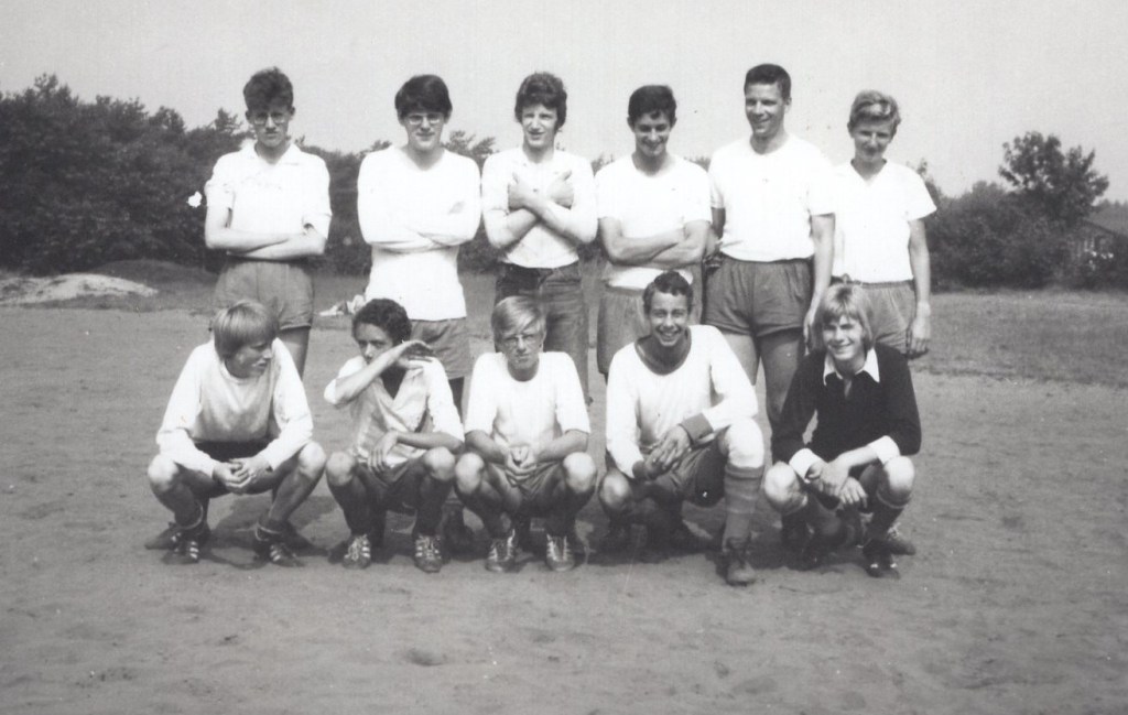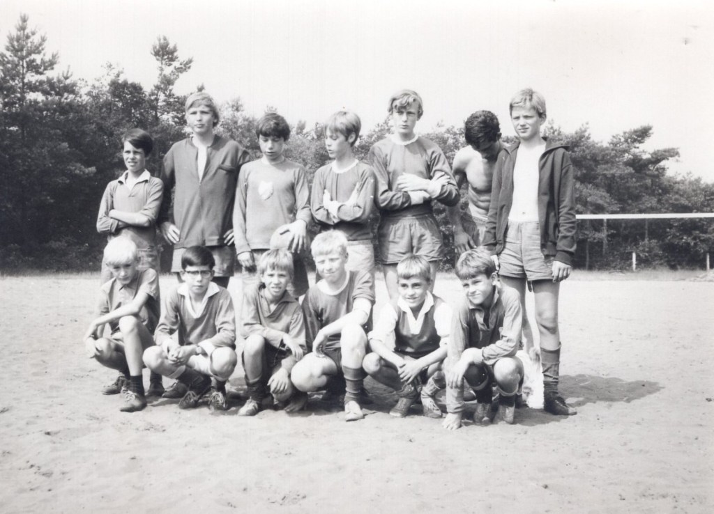 Maar we hebben meer gedaan dan voetballen alleen: biljarten meneer, de stukken vlogen van de keus af. Krijt zat op neuzen en oren, cola op het laken (maar dát mocht niet). Ping-pong in de B-zaal, balletjes onder de bedden, publiek op de bedden (met één man svp) en gemept dat er is, bij het leven. En Sjors lezen en Donald en Kick Wilstra en Kuifje. Wat deden we meer nog? O ja, dammen en eenentwintigen, hartenjagen en pandoer met de pater. En ’s middags het bos in of een koene duik in het nat. Anderen zaten in de boot, als ze erbij konden komen, of hingen eraan. Eenmaal was er een komplete zeeslag te beleven. Het ging om een boot voor 22 personen. In het bos: vlagveroveren, diefie en zo meer. Sluipend door het zand, door eikenbosjes, klimmen in bomen en vechten (uit het gekkie natuurlijk) in struiken.
